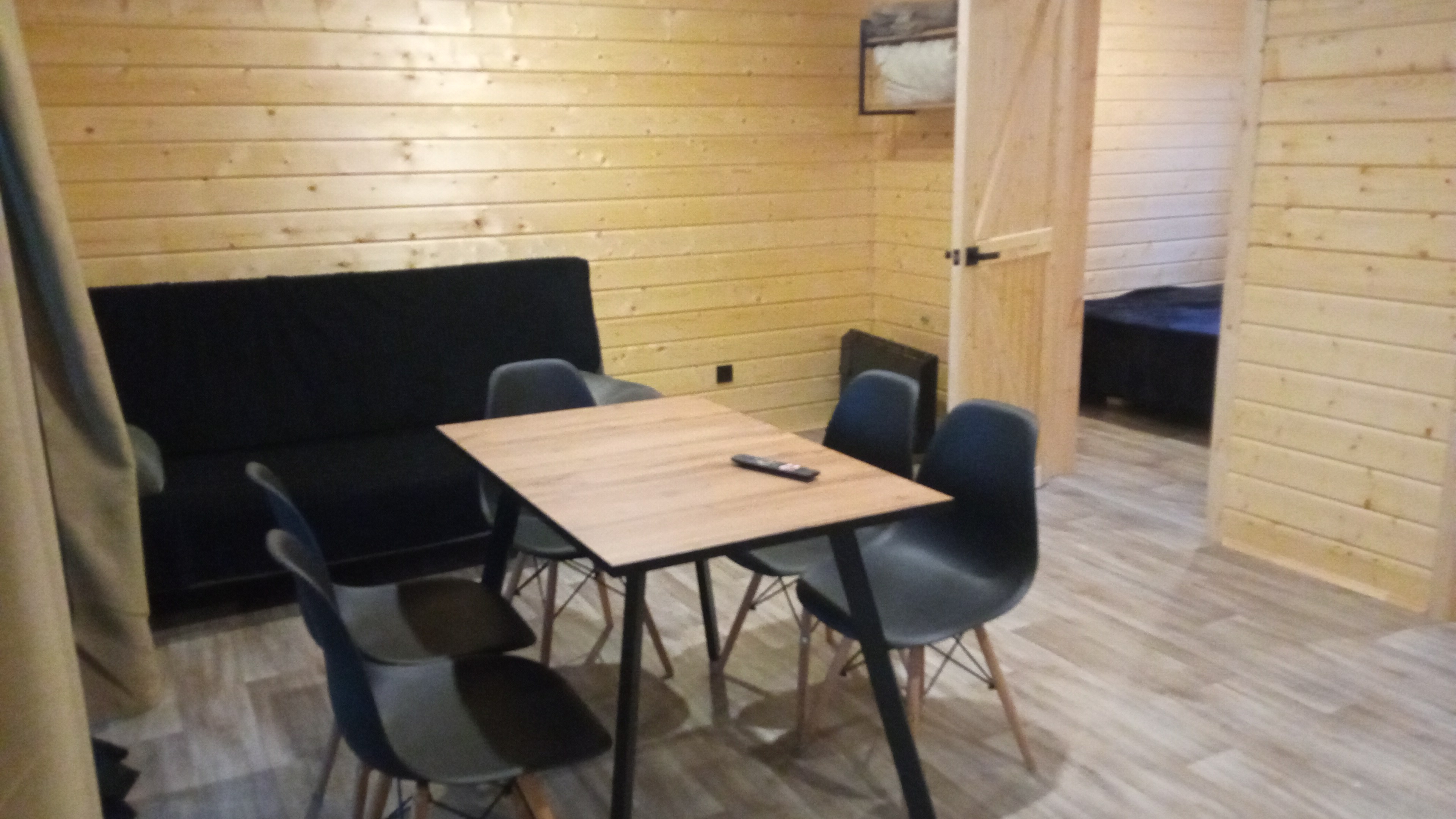 Общий просторный холл, в нем 2-х спальный диван. Две отдельные спальни. В одной 2-х спальная кровать. В другой 2-е односпальные кровати стационарные. Телевизор- Smart и Wifi. Кухня с необходимой посудой, встраиваемая газовая варочная панель, холодильник, санузел-ванна, раковина, фен, туалет. Коттедж оснащён современными электрообогревателями.