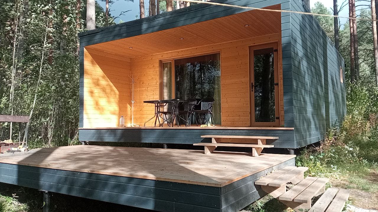 На веранде уличная мебель стол стулья. у каждого дома своя территория 500-600 м нетронутой природы соснового леса Также имеется свой стационарный мангал, дополнительная панорамная площадка для пикника.